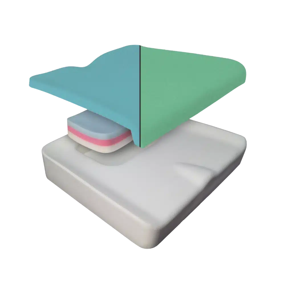 Diese Kissen bieten hervorragenden Hautschutz und eine präzise Positionierung. Sie verfügen über eine SunMate FRG-Schaumoberfläche (XXSoft in Blau, Medsoft in Grün) mit einem mehrschichtigen Schaumeinsatz im Sitzbeinbereich für eine effektive Druckentlastung sowie Entlastung des Sakralbereichs. Der CoolCore-Bezug gehört zur Standardausstattung und sorgt für Komfort sowie Temperaturregulierung.